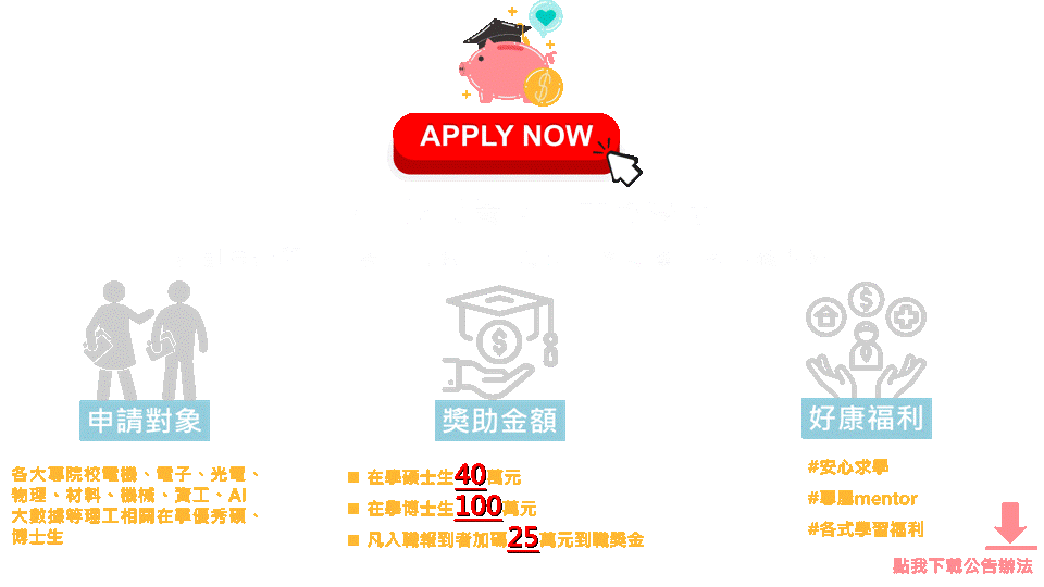 想要有創新舞台的工作經驗嗎?群創光電啟動極致獨角獸計畫,邀請同學們投遞履歷,提早卡位黃金職缺、展開與眾不同的職涯旅程。成功提早加入群創!未來關鍵就是你!