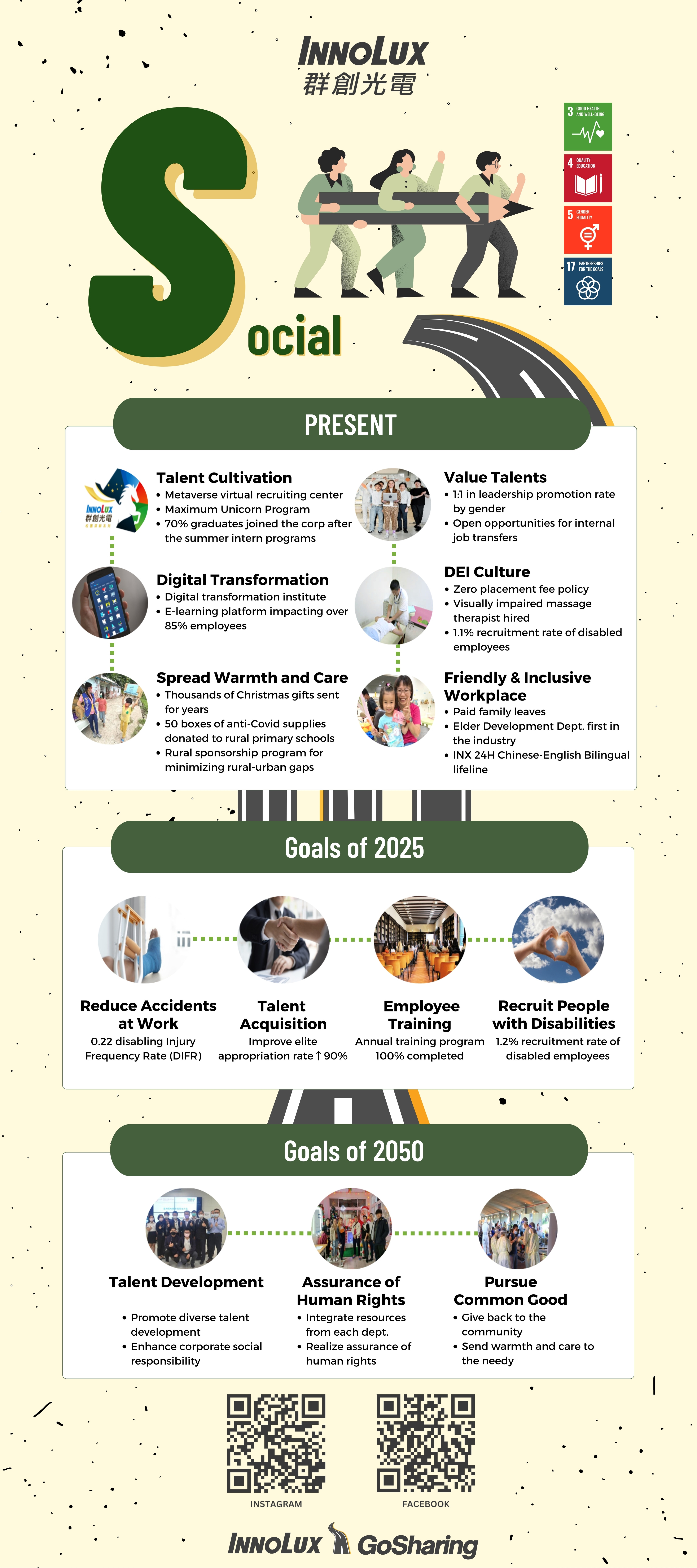 To attract talents, Innolux provides excellent working environment with competitive salaries and well-rounded benefits. Based on the working cultures in different countries, the benefits are adjusted accordingly.